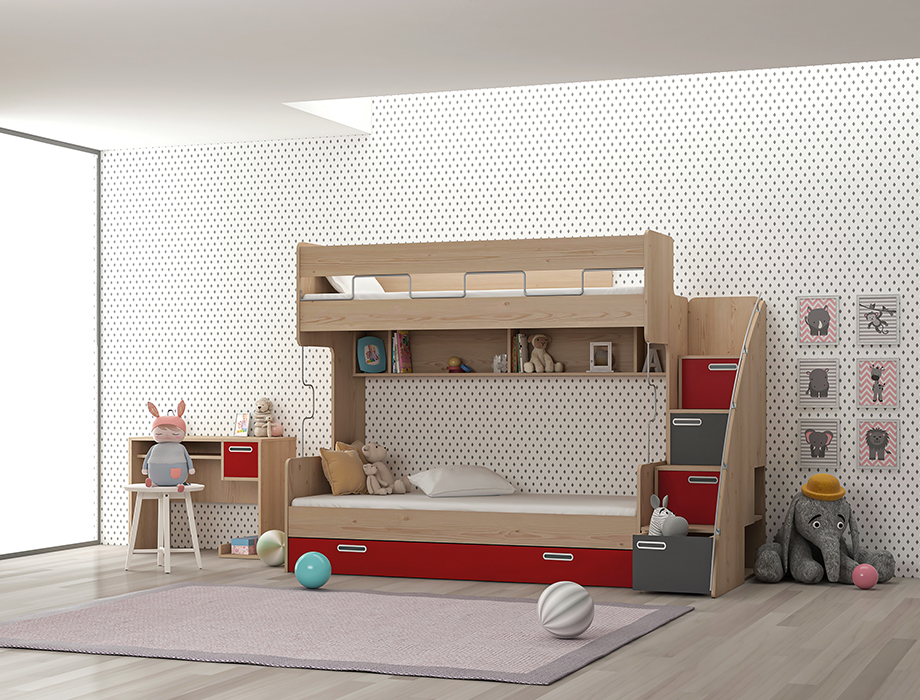 • Fixed Ladder for Additional Safety:A sturdy ladder to ensure safe and easy access to the upper bunk.